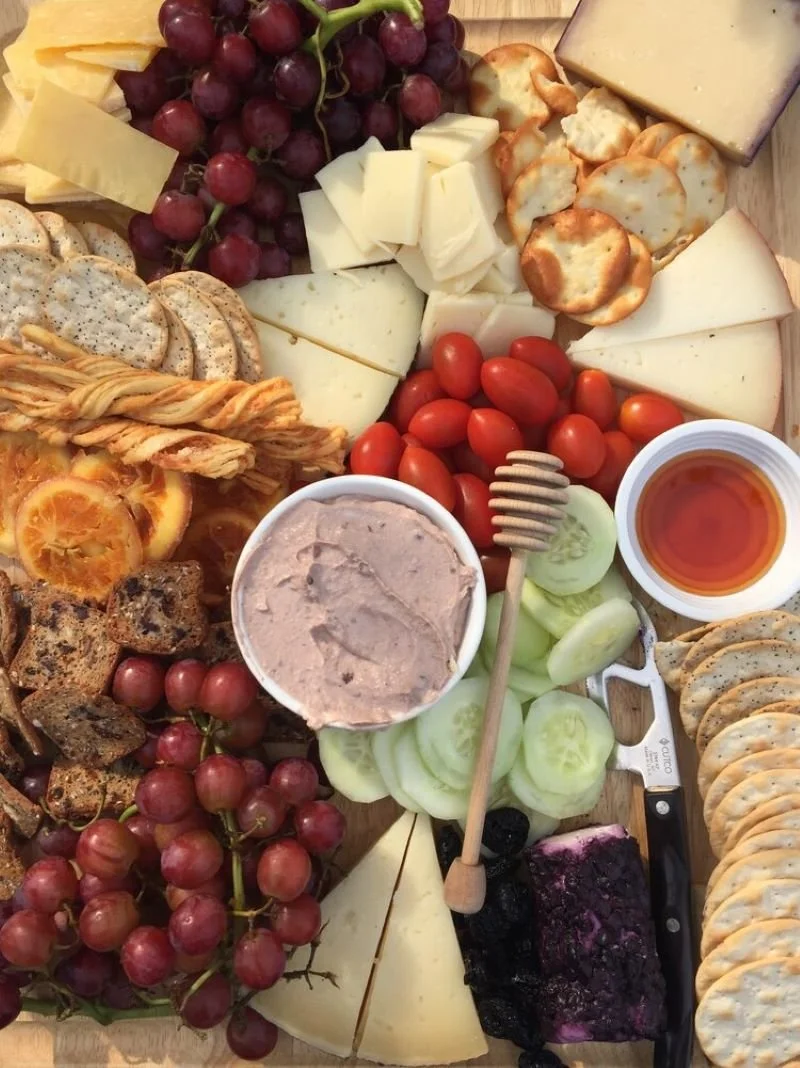 Of course not every cheese board requires this amount of variety! For smaller gatherings, I pick 3-4 of these and that’s plenty! For a larger party, I went all out and had all of the above lol. You can also adjust for special diets. When I’m keto’ing, I use more veg like cucumbers with spinach dip and Parmesan crisps instead of crackers.